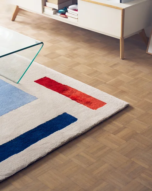 The objects can be placed alone but the playing starts when they are combined so they can grow and change in unlimited ways. The forms and colours in the objects are a stimulation for the creative eye: red stripes could be connected but they can also be placed next to a blue rectangle or a yellow square. In this field, there is no limit.